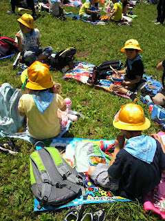 そして、今日はお弁当給食でした。クラスによっては、校庭の日陰で食べました。